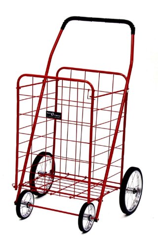 Sturdier Than Most But Needs Careful Handling, January 30, 2010 Amazon Verified Purchase This review is from: Jumbo Shopping Cart, Red (Misc.) My husband and I used to use a so-called "granny cart" 15 years ago for shopping on foot when we didn't have a car. We're back to that again, hoofing or riding the bus wherever we go here in town. My husband, who is not handy, put the Narita Trading NTCoo1-RD Jumbo shopping cart together quickly and was impressed with how sturdy it seemed. After using it just once, however, one of the wheels warped, and that is how he found out that when going up porch or other stairs, high curbs and such, extra care must be taken. He was able to return the wheel to its proper alignment--I think he used standard pliers, but just be forewarned, this cart--the wheels, I mean--isn't like a baby stroller; you have to go slow; otherwise, in the weeks that we've been using it for grocery shopping, laundry, errand running with are bags and coats in it (we're in Colorado) it has performed fine. We are getting a second one as a back up, and for me to use along with the other when my husband and I have large... Read more