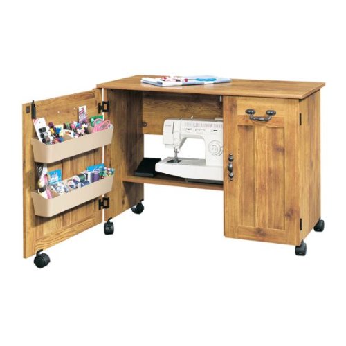 I have had this exact cart for at least five years. The left hand fold up table hinges quickly gave way and fell off so if you were counting on that extension for extra workspace, don't! Otherwise the whole thing has held up remarkably well. I have since expanded from one sewing machine to two and two sergers to meet my needs so I have definitely outgrown the small storage spaces. the door is cumbersome to open and close and feels a bit flimsy but hasn't broken yet. For the price I would get it again but at this time, i am currently looking to upgrade.